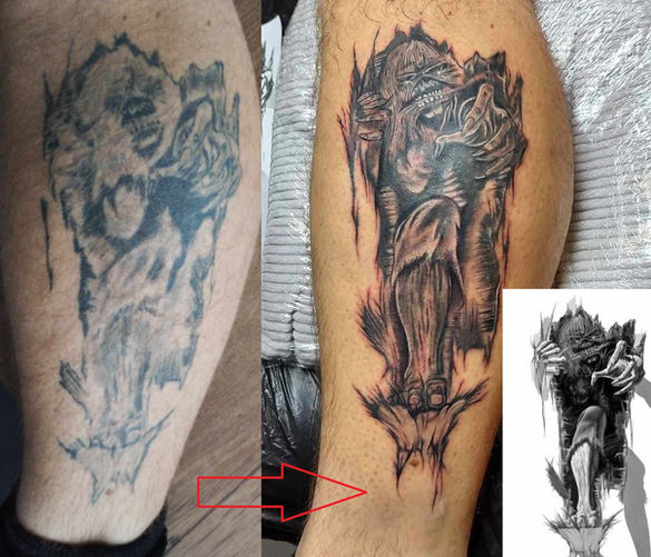 Druhou možností je úplné překrytí stávajícího motivu - v tomto případě je třeba zohlednit podobu stávajícího tetování, aby bylo překrytí vůbec možné. Zakázku na "Cover" - nebo-li "překrývačku" přijímám v případě, že má zákazník reálnou představu o novém motivu. (Pokud po mně budete chtít z tribalu jemné kytičky, tak to nebude reálné).